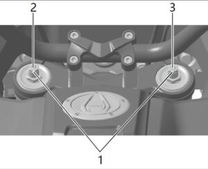 Επίσης μπορούμε να ρυθμίσουμε τη ταχύτητα (απόσβεση) επαναφοράς (rebound dumping) από την αριστερή μπουκάλα εμπρός με την ένδειξη 2 (TEN) και τη ταχύτητα (απόσβεση) συμπίεσης (compression dumping) από τη δεξιά μπουκάλα με την ένδειξη 3 (COMP).