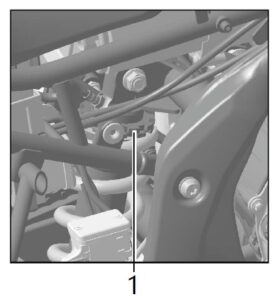 Κοιτώντας από πάνω προς τα κάτω, γυρίστε τον ρυθμιστή που μοιάζει με γρανάζι (1) δεξιόστροφα για να γίνει πιο σκληρή η λειτουργία του ελατηρίου.